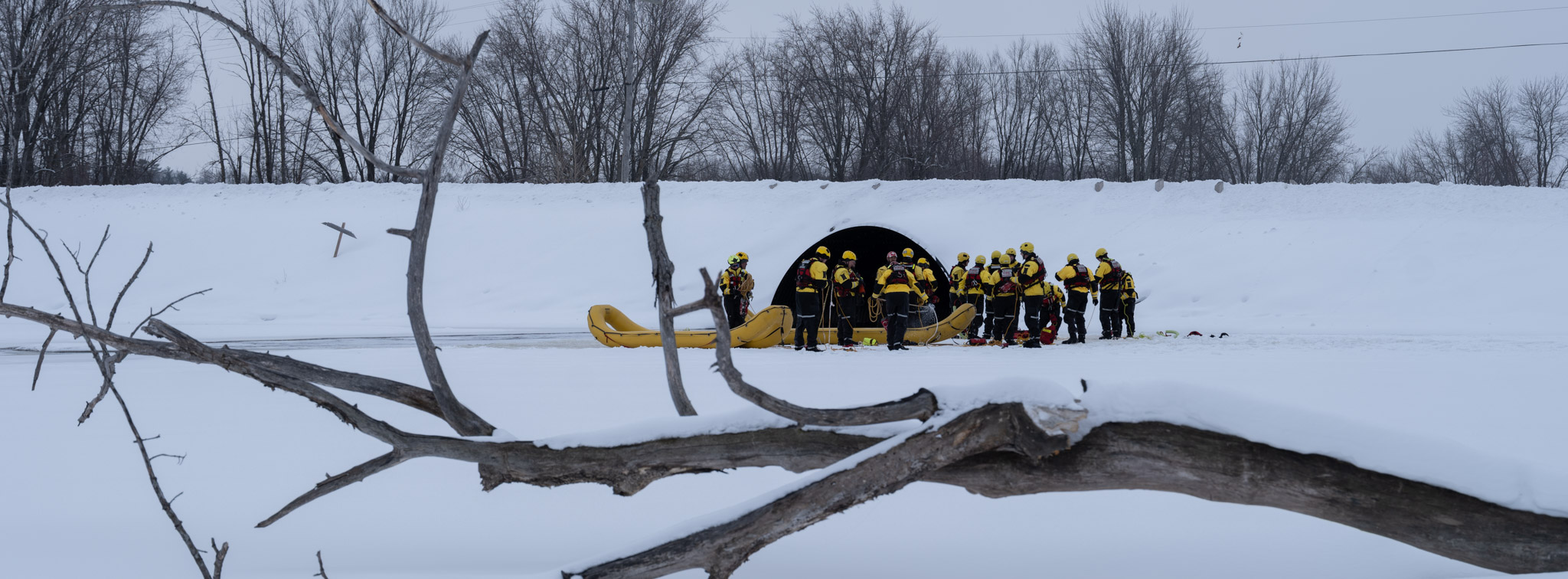 Ice Fishing Huts at Petrie Island 11 Feb '26 Fireman cold water rescue training